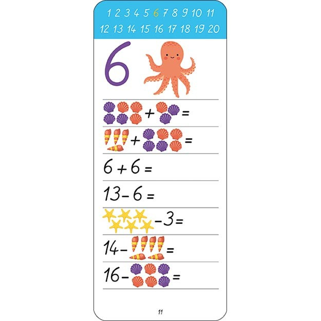 Zábavná edukačná sada pre predškolákov aj prvákov! Obsahuje 20 obojstranných stieracích kariet s rôznymi príkladmi na sčítanie a odčítanie a čierny fix. Deti si môžu úlohy opakovane vypočítavať, opravovať a trénovať základy matematiky hravou formou. Všetko je uložené v praktickom uzatvárateľnom puzdre, ideálne na cesty aj domáce učenie.