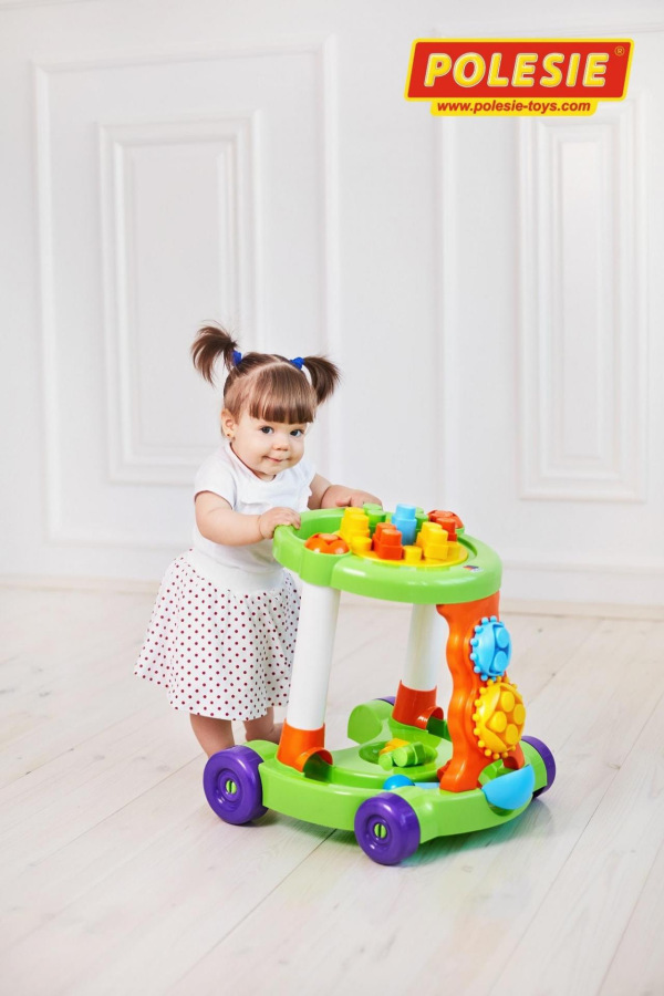 Herný vozík s návrhárom môže byť použitý nielen ako chodec, ktorý sa stane spoľahlivou oporou pre prvé kroky dieťaťa, ale aj ako logická hračka, ktorá ho môže zaujať vzrušujúcimi hernými prvkami. Tu sú jasné zariadenia, ktoré prispievajú k rozvoju jemných pohybových schopností rúk, a návrhára, ktorý zavádza farbu a tvar, a dokonca aj mini-labyrint pre plastové gule, ktoré tvoria koncept pohybujúcich sa objektov vo vesmíre. Tento článok môže byť prezentovaný v ružovej a zelenej farbe.