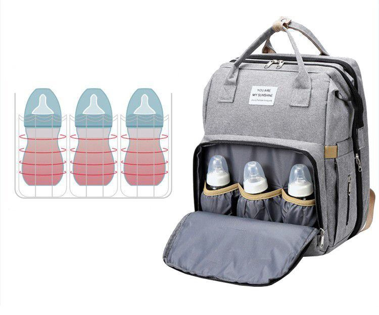 Tento unikátny batoh pre mamičky Mommy je praktickou pomôckou pre všetkých, ktorí sa starajú o malé dieťatko. Batoh sa skladá z dvoch veľkých priehradiek, pričom jednu z nich sa dá pomocou rozopnutia zipsu premeniť na pohodlnú prebaľovaciu podložku s vložkou zo sieťoviny. Môžete tak kedykoľvek a kdekoľvek svoje bábätko prebaliť. Druhá priehradka slúži ako klasické vrecko plecniaka - môžete v nej prenášať plienky, plienkové nohavičky, vlhčené obrúsky, detskú výživu, fľašu s vodou alebo náhradné oblečenie. V menšom prednom vrecku na zips sú 3 priehradky s termoizolačnou stielkou, do ktorých môžete vložiť napríklad detské fľaštičky. Po stranách batohu sa nachádzajú ešte dve priehradky, vhodné na fľašu alebo dáždnik. V jednej z priehradiek je otvor na zips, ktorý keď rozopnete, môžete vyťahovať vlhčené vreckovky priamo z vrecka. Súčasťou batohu sú aj dva trakmi s karabínami, vďaka ktorým batoh jednoducho pripevníte na madlo alebo konštrukciu kočíka. Návod na rozloženie prebaľovacieho priestoru: Pri veľkom zadnom vrecku rozopnite zips úplne dookola. Ťahom od seba rozložte tkaninu. Dve priložené výstužné tyčky vsuňte do otvorov v hornom leme postrannej sieťky. Do vzniknutej ohrádky vložte na dno vložku zo sieťoviny. Prebaľovacia podložka je pripravená na použitie. Rozmery plecniaka: 40x30x20 cm