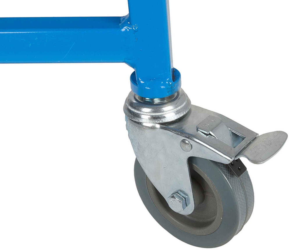 Mobilita vďaka otočným kolieskam s brzdami – Zdvihák je vybavený štyrmi otočnými kolieskami, ktoré umožňujú jednoduché premiestňovanie zariadenia po stavenisku. Každé koliesko má brzdu, ktorá zaisťuje stabilitu zdviháka počas prevádzky a zabraňuje náhodnému pohybu. Ďalšie piate transportné koleso pod hlavným stĺpikom zdviháka umožňuje jednoduchý pohyb zloženého zdviháka, čo výrazne zjednodušuje prepravu.