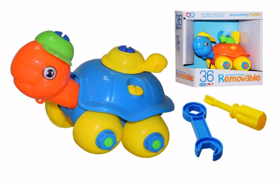 Farebné montovacie zvieratko. Sada obsahuje zvieratko, kľúč a skrutkovač (dinosaurus len skrutkovač). Vhodné na precvičenie si jemnej motoriky. Možnosť výberu: sloník, korytnačka, dinosaurus alebo kravička. Každé zvieratko je v dvoch farebných kombináciách. Nevhodné pre deti do 3 rokov.
