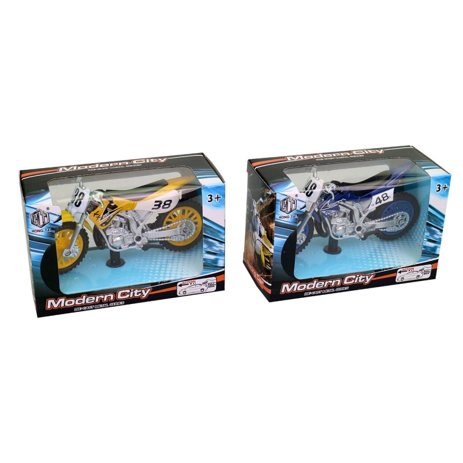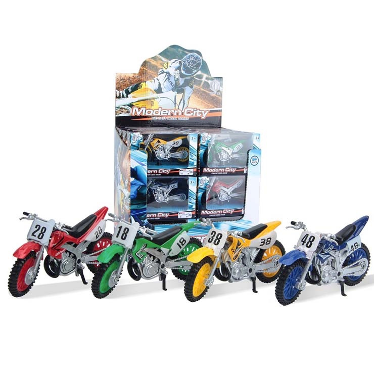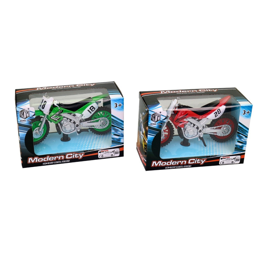 Motorka závodná kovová, rozmer: 12 x 4,5 x 7,5 cm. Na výber v 4 farbách. Cena za kus.