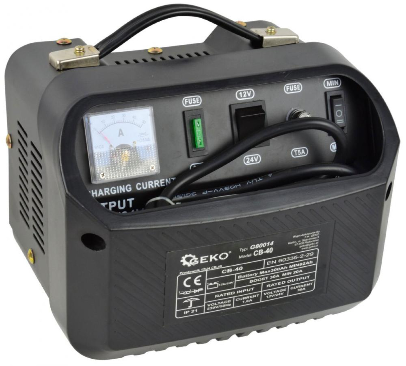 Nabíjačka autobatérii CB-40 určená na nabíjanie olovených batérií (STD) s napätím 12V, alebo 24V, použitých v automobiloch, dodávkach, nákladných automobiloch atď. Má vstavanú poistku, ktorá chráni zariadenie pred nesprávnym prepojením polarity a skratom.