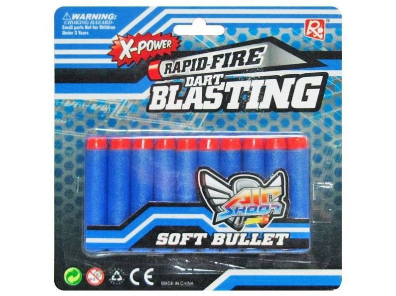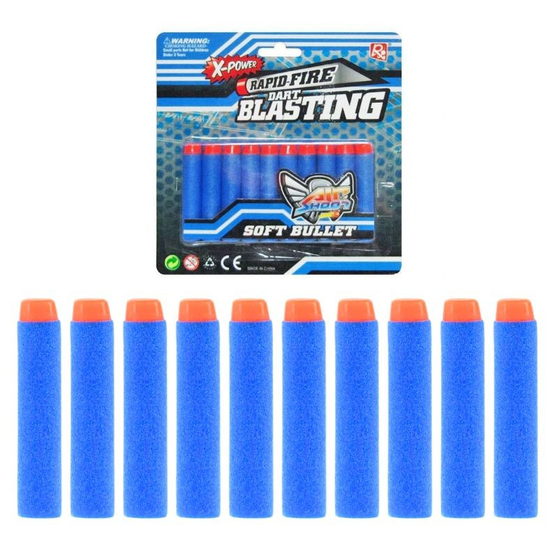 Náhradné penové náboje sú určené pre detské hračkárske pištole a pušky na penové strely. Mäkký penový materiál je navrhnutý s ohľadom na bezpečnosť pri hre a je vhodný na streľbu na terče alebo pri akčných hrách s kamarátmi. Balenie obsahuje 10 kusov penových nábojov pripravených na použitie.