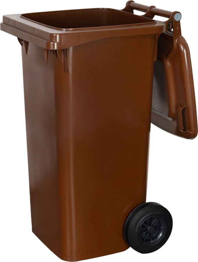 Nádoba na odpad ICS GB4 s objemom 120 litrov v hnedej farbe je robustná a praktická popolnica určená na zber a skladovanie komunálneho odpadu. Vyrobená z odolného plastu, ktorý je rezistentný voči poveternostným vplyvom, UV žiareniu a mechanickému poškodeniu, čo zabezpečuje jej dlhú životnosť.