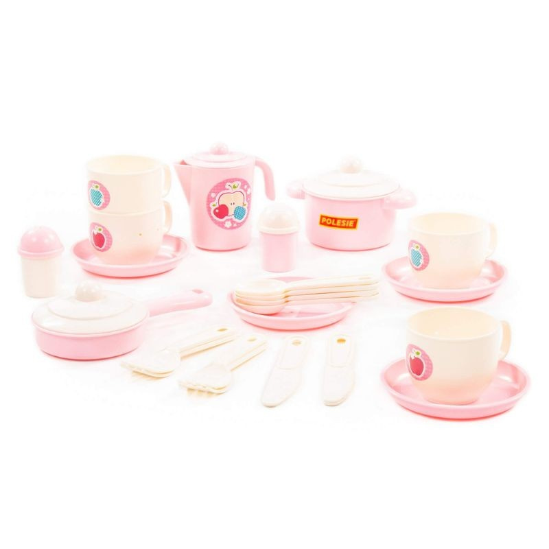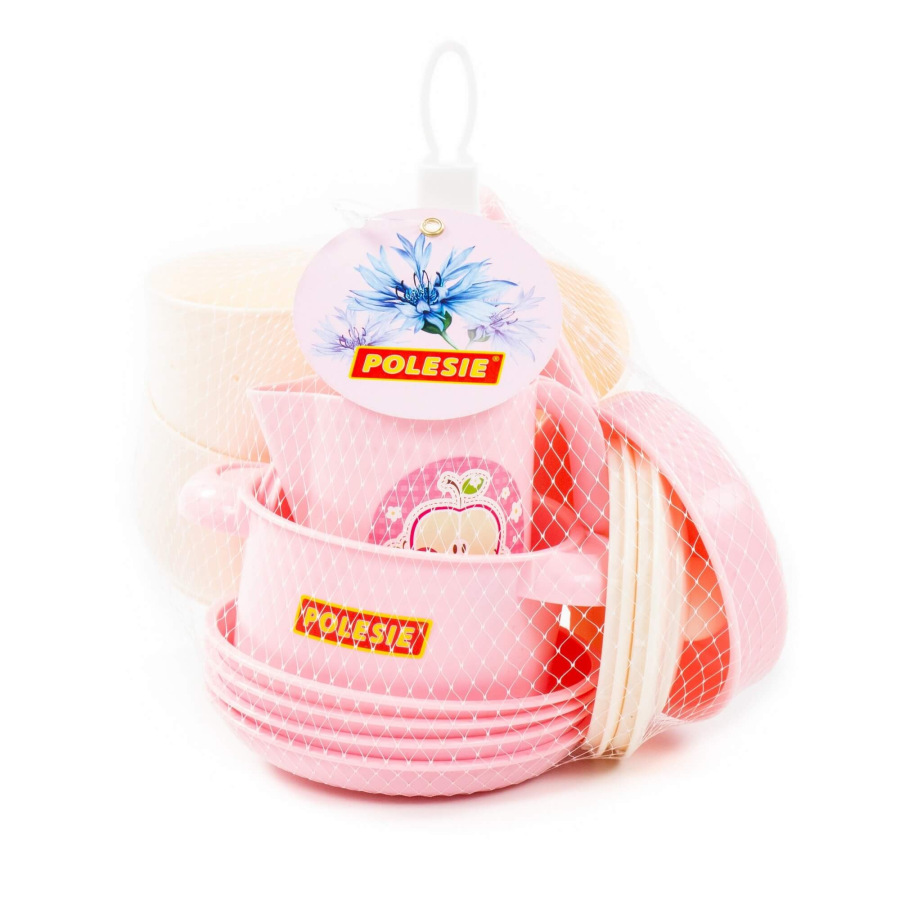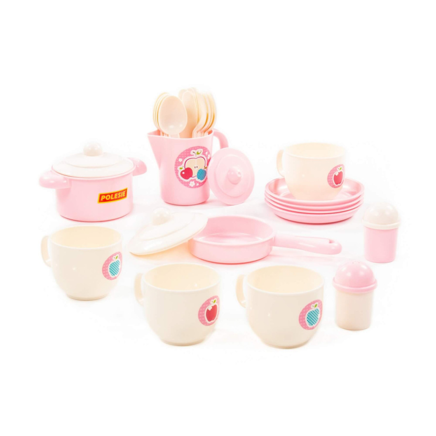 Nádobíčko Gazdinka obsahuje 28 dielov riadu a doplnkov, s ktorými si deti môžu pripraviť vlastné stolovanie a zahrať sa na varenie alebo hostenie návštevy. Sada je určená pre štyri osoby a obsahuje taniere, šálky, príbory a ďalšie doplnky na servírovanie, ktoré podporujú fantáziu, kreativitu aj sociálne zručnosti pri spoločnej hre.
