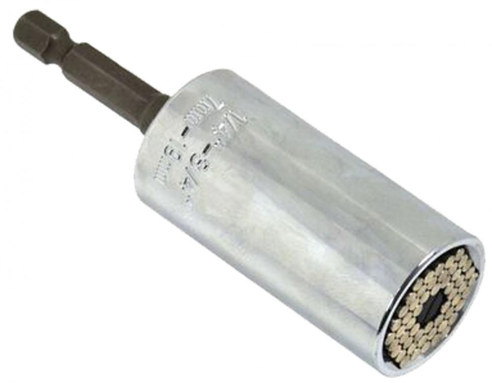 Univerzálna hlavica, ktorá sa ľahko prispôsobuje rôznym tvarom. S jej pomocou môžete odskrutkovať: štvorhranné a šesťhranné skrutky so závitom, skrutky s okom, krídlové matice, háčiky a dokonca aj poškodené a skorodované skrutky. Uzáver bol navrhnutý tak, aby sa automaticky prispôsobil akejkoľvek veľkosti matíc alebo skrutiek od 7 do 19 mm (1/4 "až 3/4").