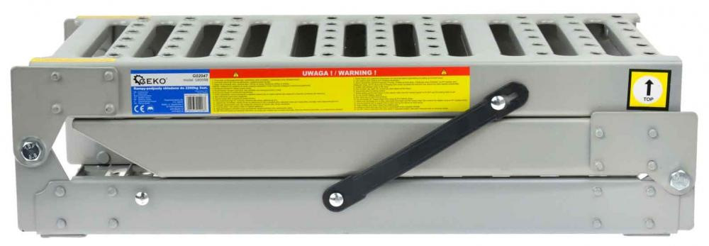 Súprava rámp GEKO obsahuje dve skladacie rampy pre štvorkolky, záhradnú techniku alebo motocykle so šírkou pneumatiky do 225 mm. Rampy majú maximálnu nosnosť 2,2 tony (v zloženom stave), alebo 350 kg (v rozloženom stave), ak sa používajú ako nakladacia rampa. Ideálne na použitie s prívesmi, vlečkami a inými vozidlami. Rampy poskytujú zvýšenú priľnavosť a bezpečnosť vďaka perforovanému povrchu.