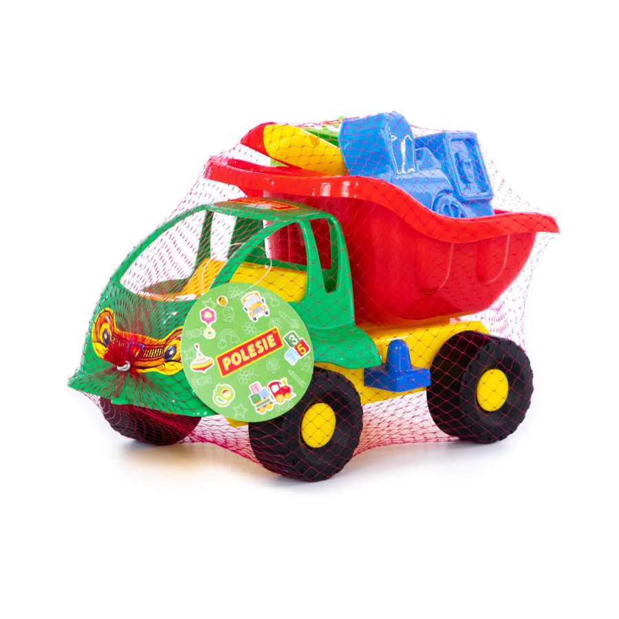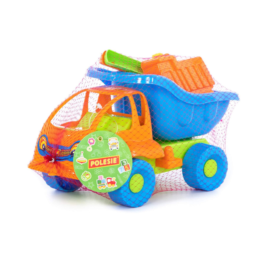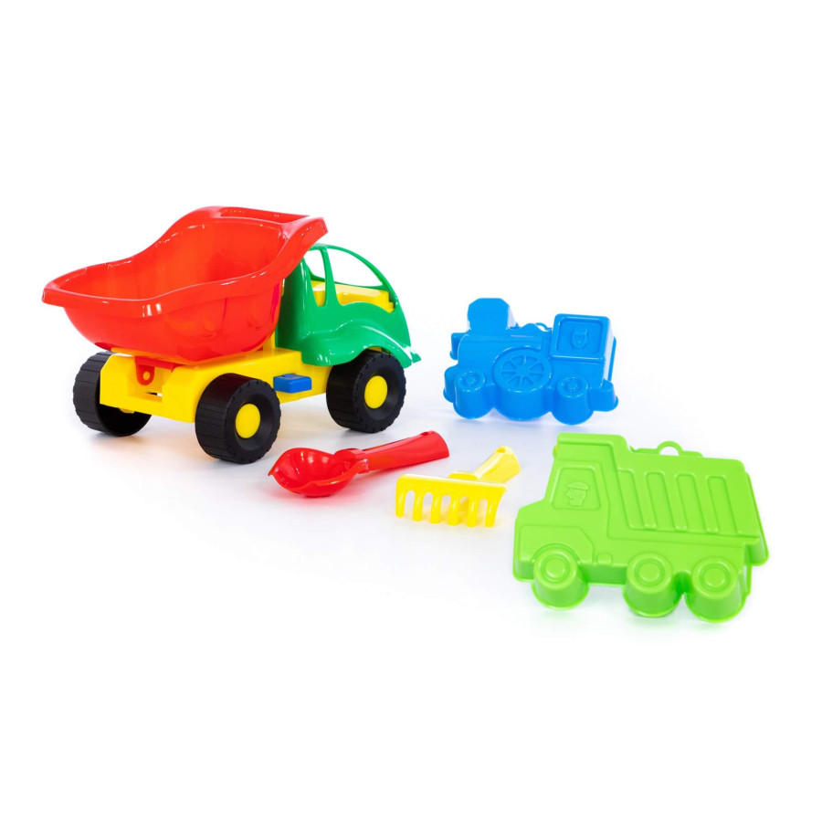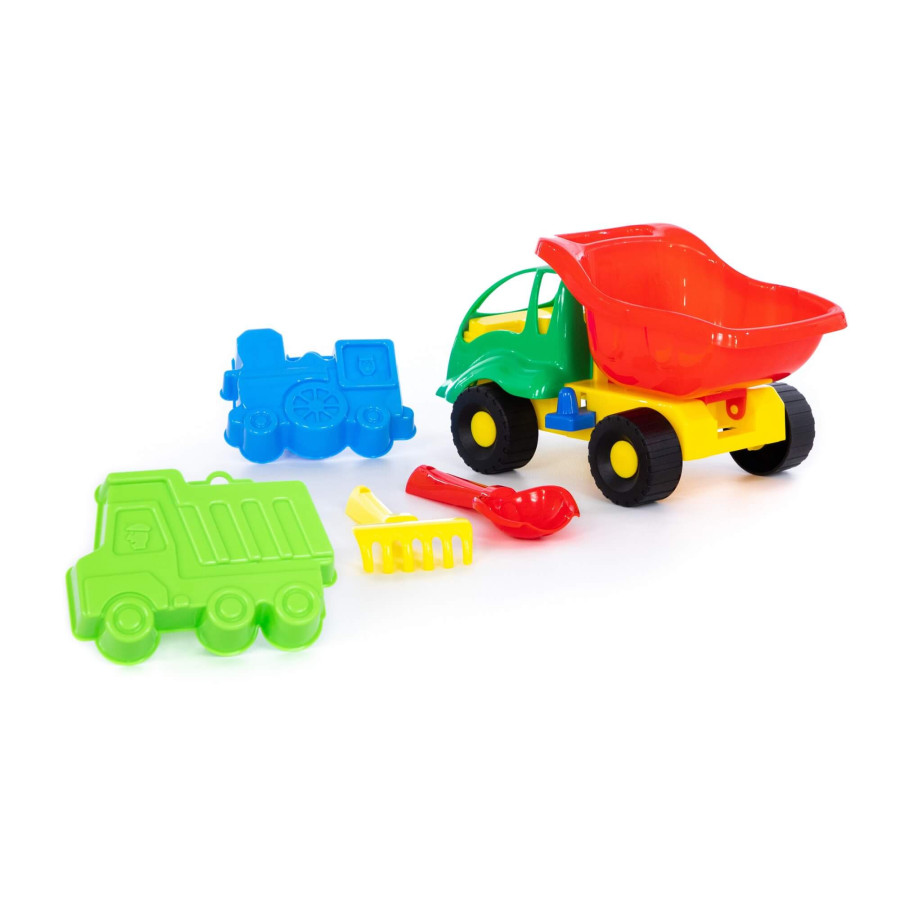 Nákladné autíčko na piesok s príslušenstvom, má rozmery 295х160х175 mm. Na výber je z dvoch farebných variánt. Sada obsahuje autíčko, 2 formičky, lopatku a hrable. Cena je za jednu sadu. Vhodné pre deti vo veku 3+ rokov.
