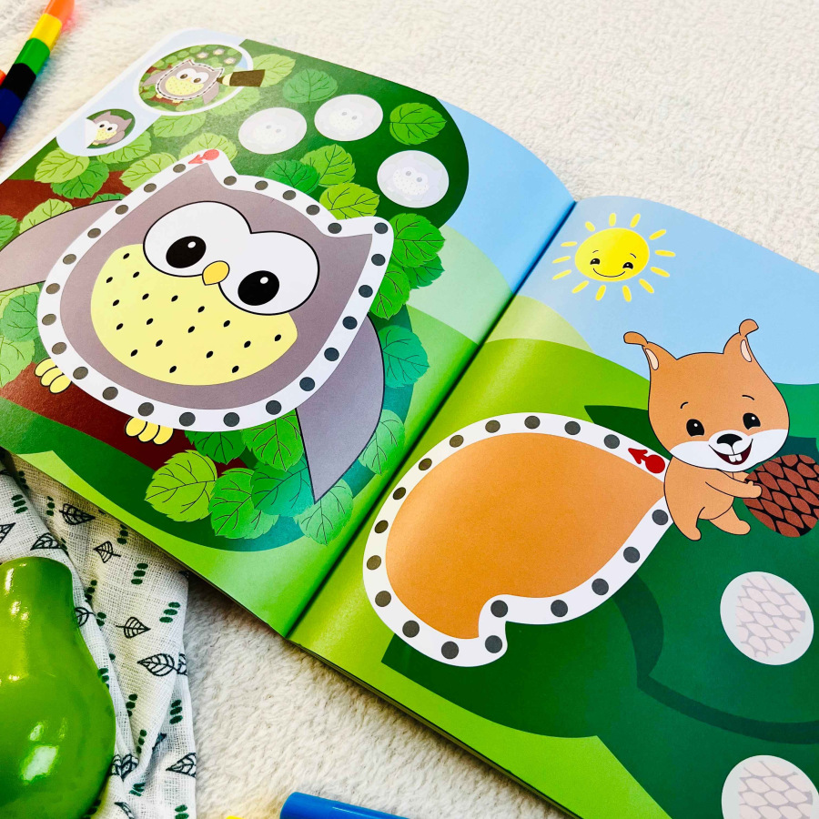 Nalepuj a obkresľuj Veselé zvieratká, prepája dvojicu obľúbených detských aktivít – nalepovanie a obkresľovanie. Deti prostredníctvom samolepiek a spájania bodiek spoznajú veselých zvieracích kamarátov. Rozsah je 16 strán. Cena je za kus. Vhodné pre deti vo veku 3+ rokov.
