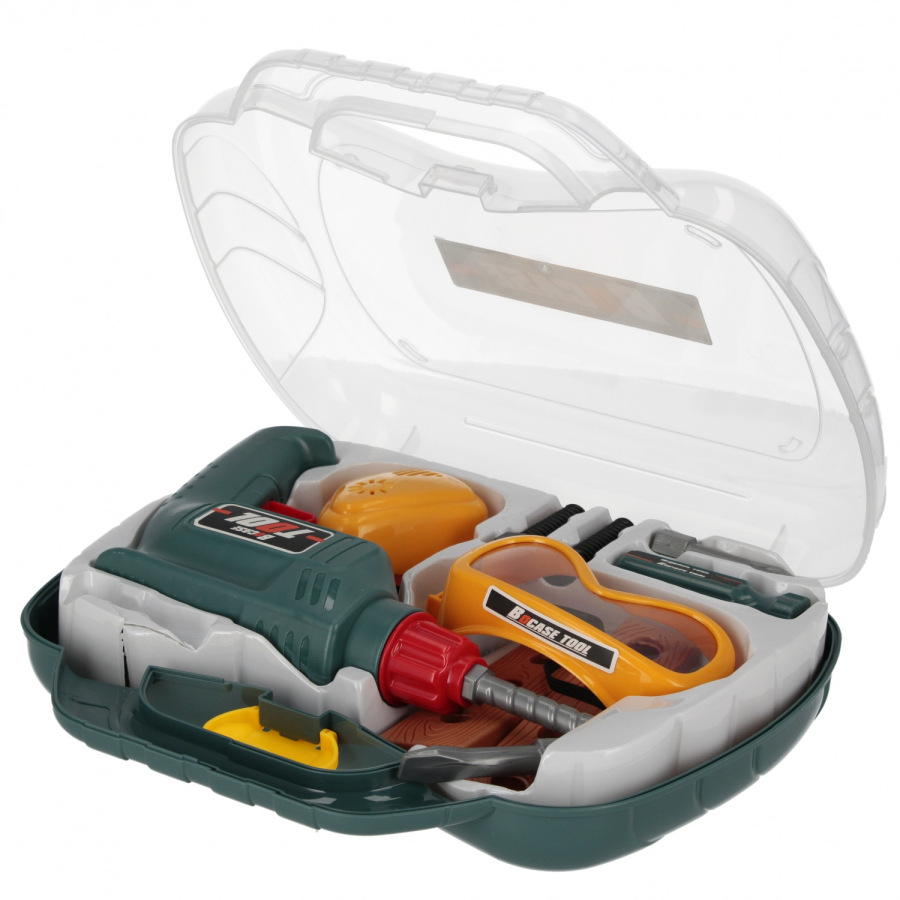 Náradie v kufíku, obsah sady je vŕtačka, ochranné okuliare, skrutkovač s 2 vymeniteľnými nadstavcami, ochranná maska, dosky na krájanie, skrutky. Cena je za sadu. Vhodné pre deti vo veku 3+ rokov.