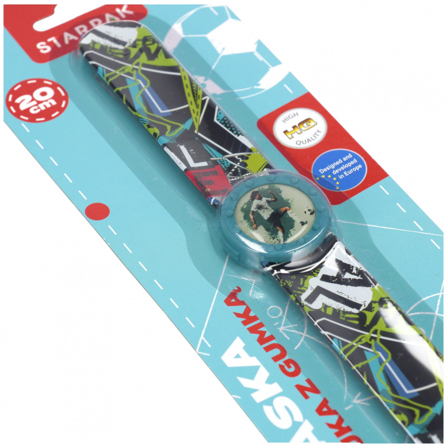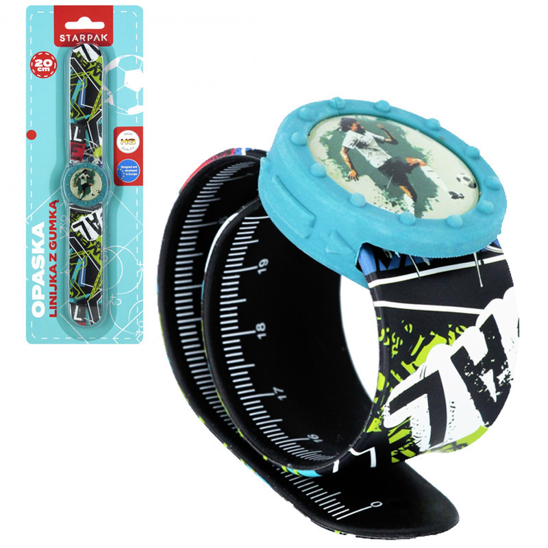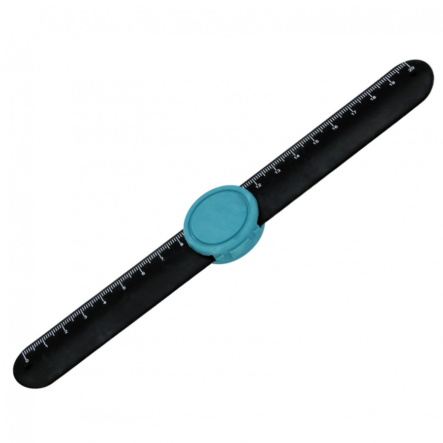 Modré hodinky pravítko, nerozbitné silikónové pravítko v podobe náramku. Má gumu, ktorá vyzerá ako ciferník. Produkt má rozmery 21,5x3,5cm. Vhodné pre deti vo veku 3+.