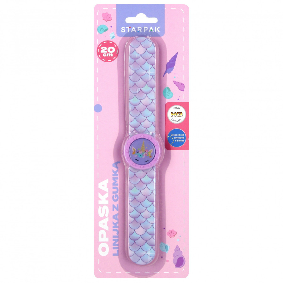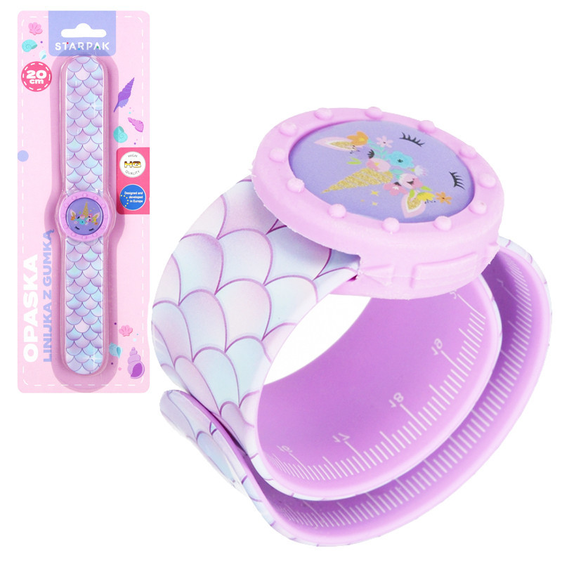 Ružové hodinky pravítko, nerozbitné silikónové pravítko v podobe náramku. Má gumu, ktorá vyzerá ako ciferník. Produkt má rozmery 21,5x3,5cm. Vhodné pre deti vo veku 3+.