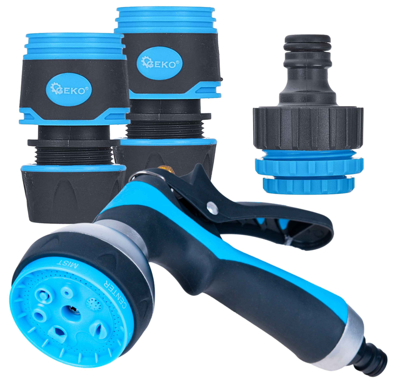 7-funkčná kovová striekacia pištoľ - Táto striekacia pištoľ so 7 režimami striekania umožňuje prepínať z jemnej hmly na zavlažovanie rastlín na silnejší prúd na čistenie dlažobných kociek alebo náradia. Nastavenie sa vykonáva jediným pohybom bez odskrutkovania trysiek.