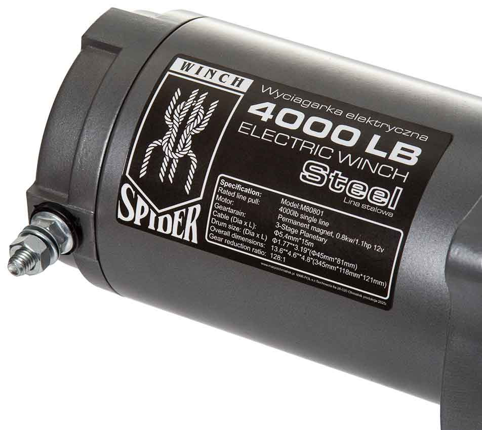 Naviják elektrický, 12V, 800W, max. ťah 1814 kg, oceľové lano 6 mm, MAR-POL