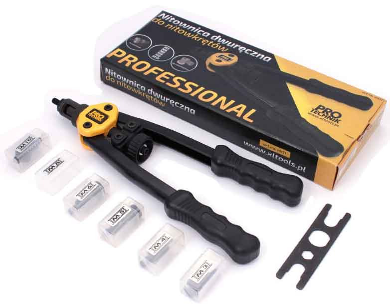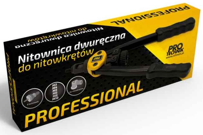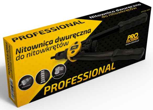 Obojručná nitovačka PRO-TECHNIK NIT11 je určená na profesionálne spájanie materiálov pomocou nitovacích matíc. Umožňuje montáž prvkov pomocou skrutiek v rozmeroch zodpovedajúcich nitovacím maticám. Perfektné pre prácu v servisoch, dielňach a pre domácich užívateľov, ktorí potrebujú solídny nástroj na montážne práce.