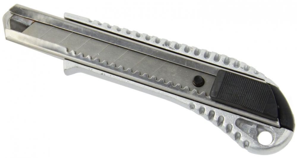 Univerzálny nôž vybavený ulamovacou čepeľou 18 mm. Nôž je vyrobený z hliníka , tvarovaná rukoväť sa bezpečne zmestí do ruky.