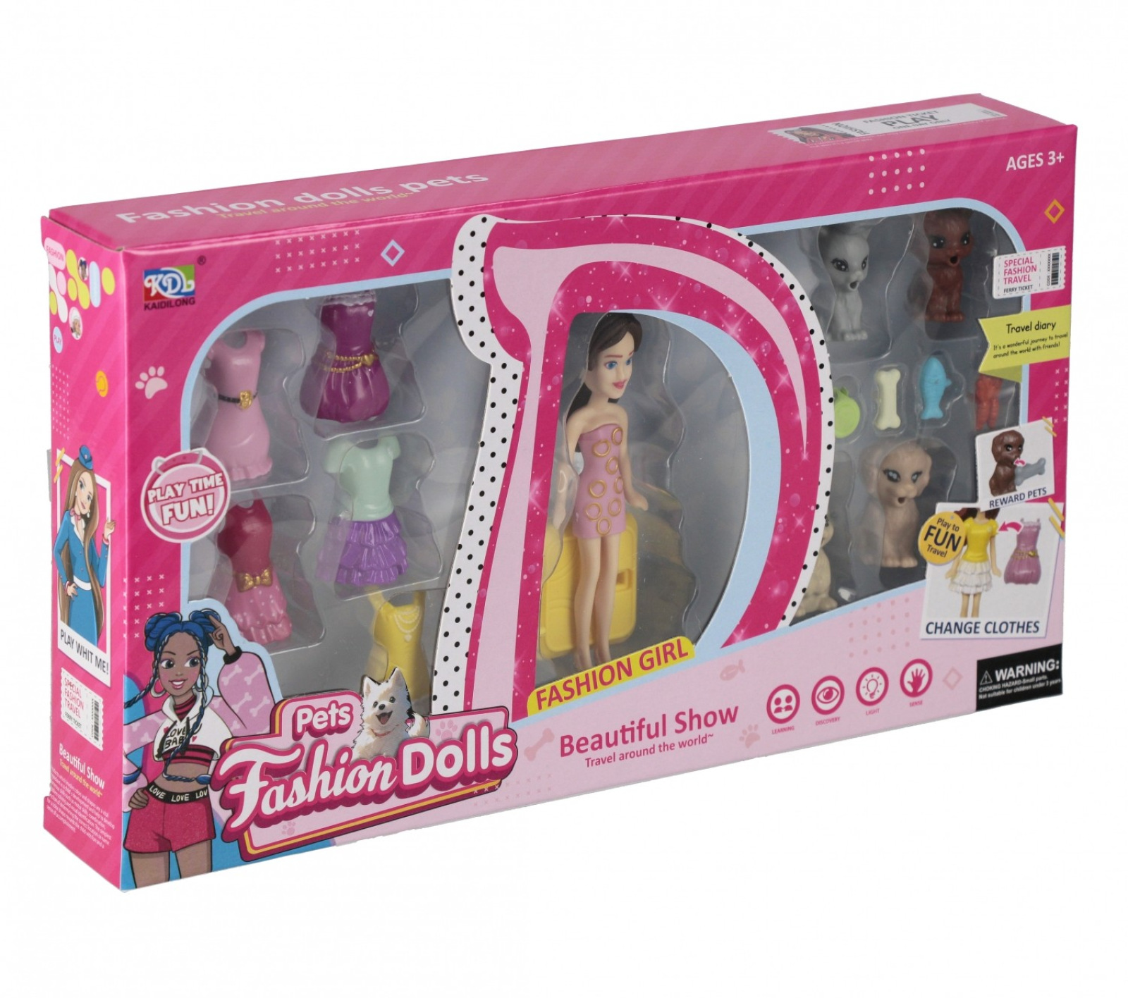 Obliekacia bábika 8 cm so zvieratami a doplnkami