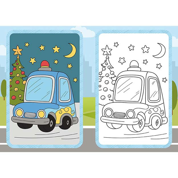 Omaľovánky Doprava, obsahujú 9 čiernobielych obrázkov na vyfarbenie a 9 farebných predlôh. Veľkosť zošita je 210 X 150 X 1 mm. Cena je za kus. Vhodné pre det vo veku 3+ rokov.