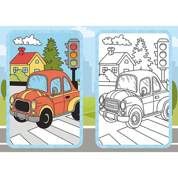Omaľovánky Doprava, obsahujú 9 čiernobielych obrázkov na vyfarbenie a 9 farebných predlôh. Veľkosť zošita je 210 X 150 X 1 mm. Cena je za kus. Vhodné pre det vo veku 3+ rokov.
