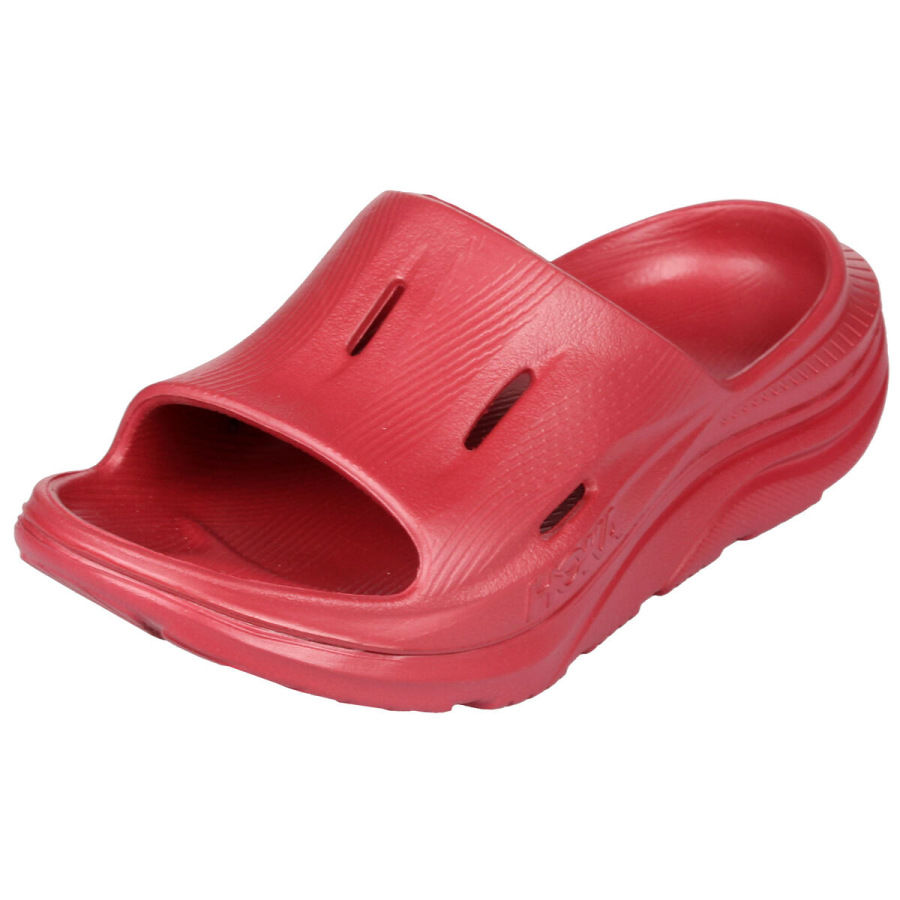 Ak ste práve dobehli vyčerpávajúce preteky alebo ste po tréningu a potrebujete vašim nohám dopriať odpočinok a pohodlie, sú unisex papuče Ora Recovery Slide 3 od HOKA ONE ONE skvelou voľbou. Rovnako ako u bežeckých topánok HOKA je aj na týchto papučiach použité klasické tlmenie oversize a tvarovanie topánok meta-rocker, vďaka čomu ponúka vysokú úroveň komfortu a podpory. Horné štyri otvory poskytujú lepšiu priedušnosť pri nosení. Vďaka týmto vlastnostiam sú tiež veľmi obľúbené aj na bežné nosenie. Topánky nie sú vhodné do terénu, ale na spevnený povrch. Nenechávajte topánky dlhodobo vystavené poveternostným podmienkam a priamom slnečnom svetle, inak môže dôjsť k ich ľahkej deformácii! Technológia: