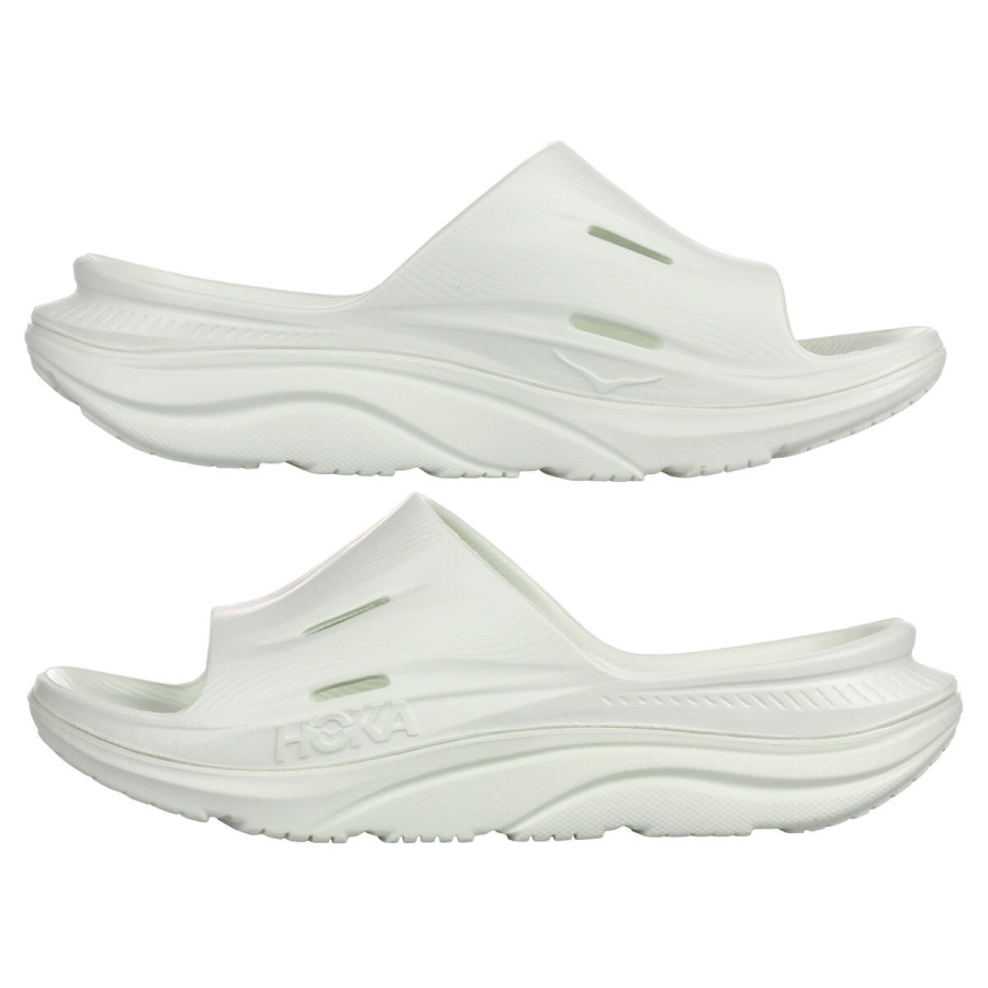 Ak ste práve dobehli vyčerpávajúce preteky alebo ste po tréningu a potrebujete vašim nohám dopriať odpočinok a pohodlie, sú unisex papuče Ora Recovery Slide 3 od HOKA ONE ONE skvelou voľbou. Rovnako ako u bežeckých topánok HOKA je aj na týchto papučiach použité klasické tlmenie oversize a tvarovanie topánok meta-rocker, vďaka čomu ponúka vysokú úroveň komfortu a podpory. Horné štyri otvory poskytujú lepšiu priedušnosť pri nosení. Vďaka týmto vlastnostiam sú tiež veľmi obľúbené aj na bežné nosenie. Topánky nie sú vhodné do terénu, ale na spevnený povrch. Nenechávajte topánky dlhodobo vystavené poveternostným podmienkam a priamom slnečnom svetle, inak môže dôjsť k ich ľahkej deformácii! Technológia: