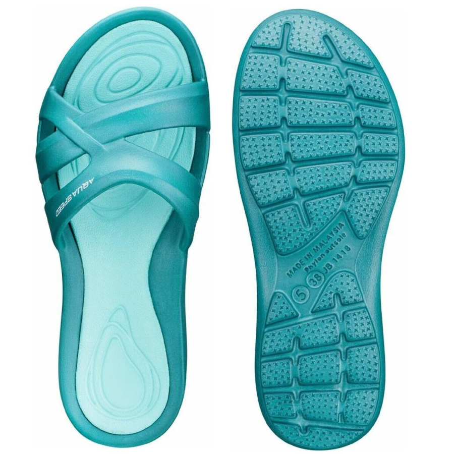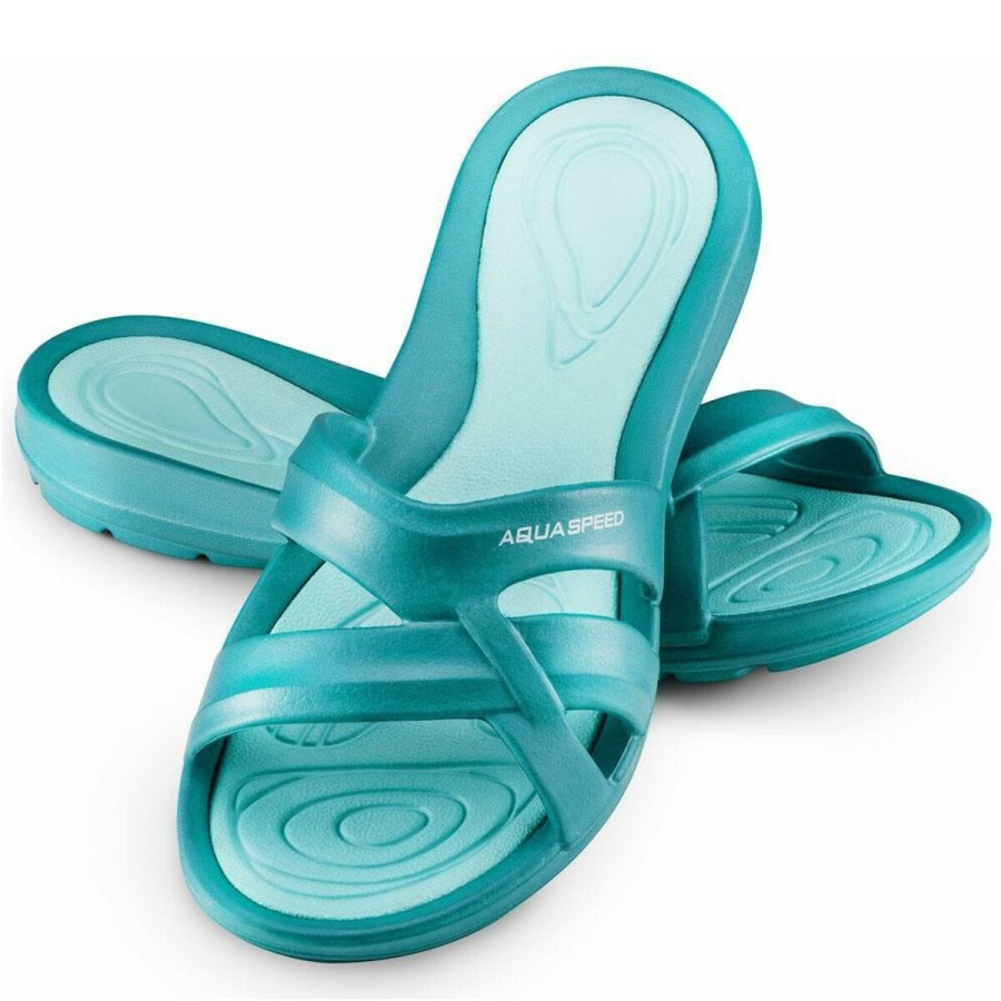 Aqua-Speed Panama sú ultraľahké dámske papuče vyrobené z Phylonu (odolná, extrémne ľahká EVA pena s vynikajúcim tlmením) sa zdrsnenou podrážkou pre bezpečný pohyb okolo bazéna. Vhodné sú aj k prírodným vodným plochám, kde oceníte práve ich nízku hmotnosť a pohodlie. Dámske papuče Aqua-Speed Panama ponúkame v troch farbách a vo veľkostiach EUR 36 - 42. S papučami Aqua-Speed Panama budete nielen v bezpečí a pohodlí, ale budete tiež eco-friendly, pretože sú kompletne vyrobené zo zdravotne nezávadného a recyklovateľného materiálu bez chlóru . A ešte navyše sú bez charakteristického zápachu a nefarbí.