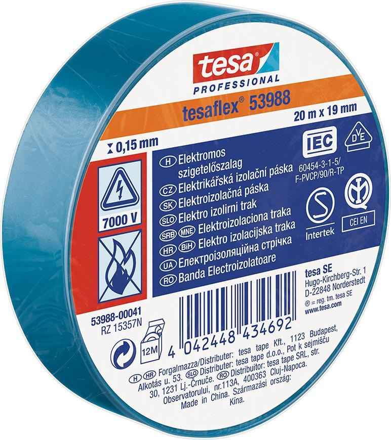 Páska tesa® PRO tesaflex®, elektroizolačná, lepiaca, sPVC, 15 mm, modrá, L-10 m