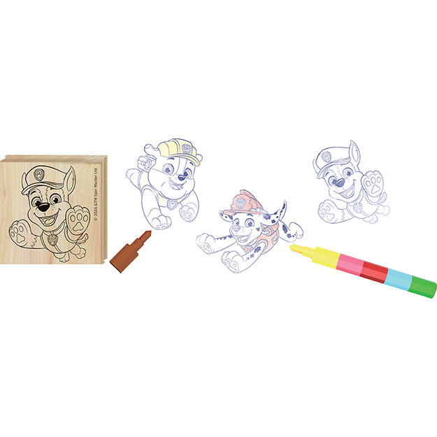 Pečiatky Labková patrola Chase, set obsahuje 3 ľahko uchopiteľné drevené pečiatky, farebnú podušku s obľúbeným motívom a šesťfarebnú skladaciu voskovku na vyfarbovanie. Má rozmery 280 X 170 X 15 mm. Cena je za set. Vhodné pre deti 3+.