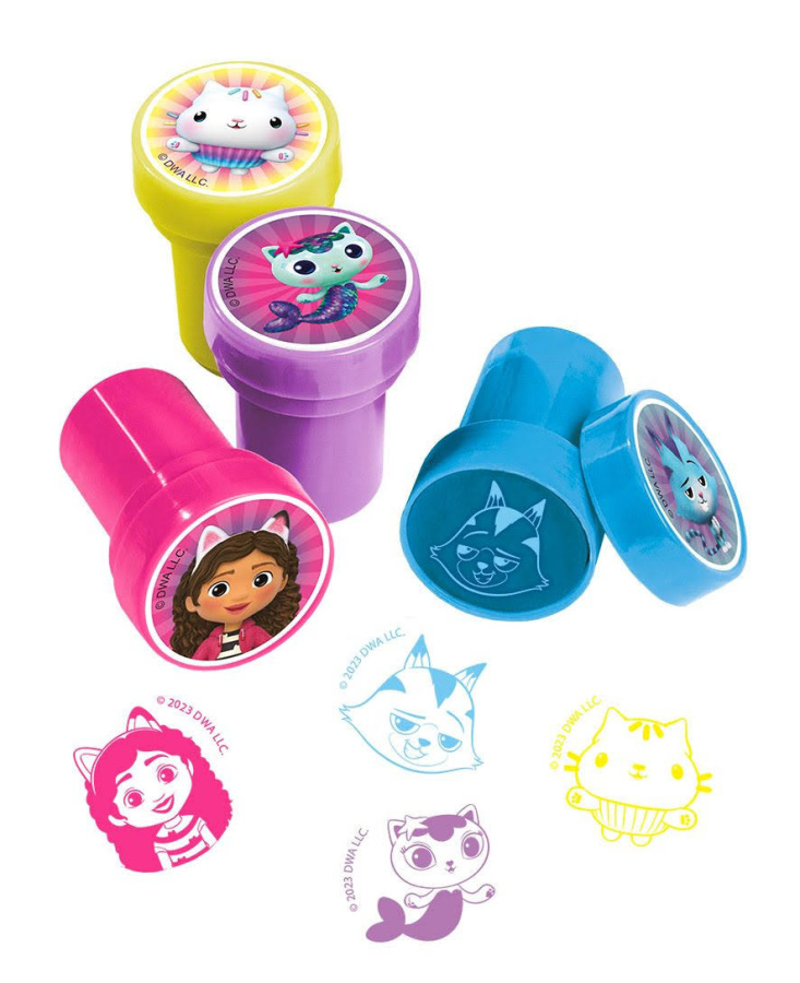 Pečiatky Gabby sada, obsahuje 12 kusov farebných pečiatok. Cena je za sadu. Vhodné pre deti 3+.