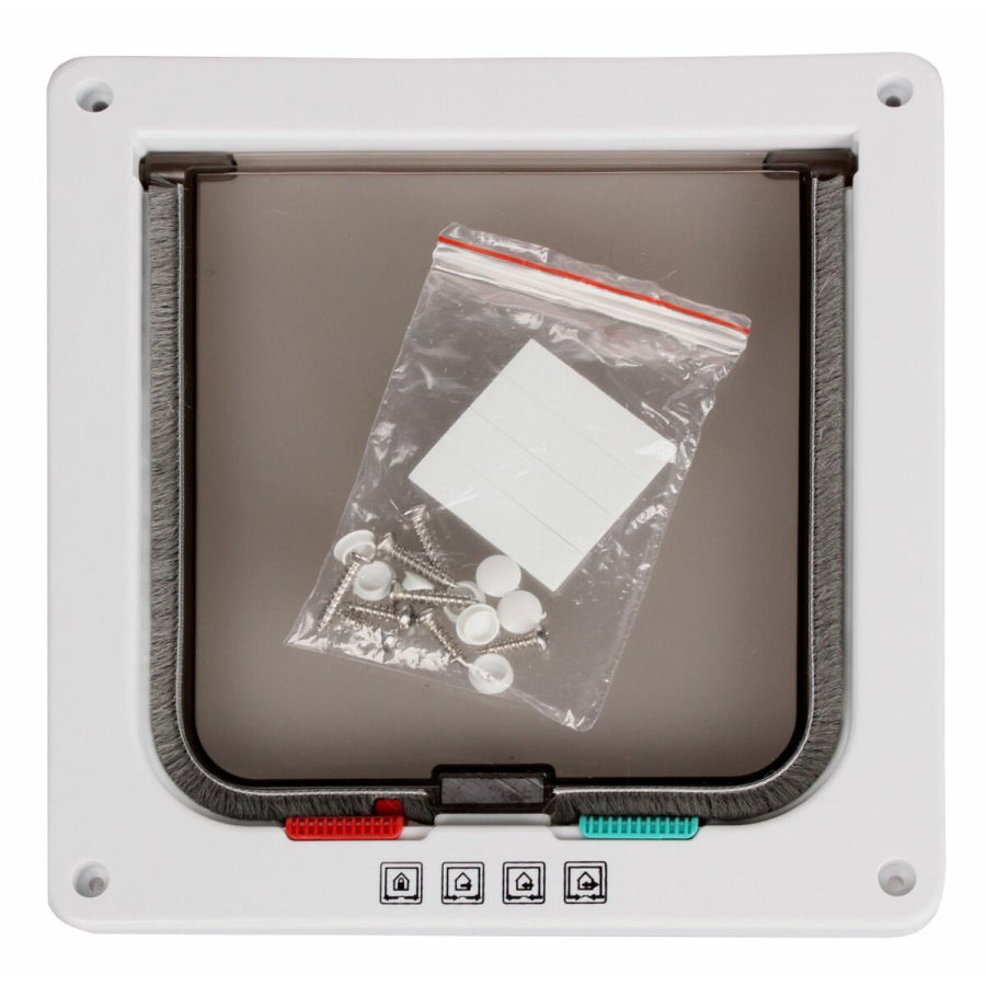 Pet Gate sú praktické dvierka so zabudovaním do dverí, vytvorené pre mačky a pre psov menších a stredne veľkých plemien. Dvierka sú vyrobené z ABS plastu a vybrať si môžete z troch rôznych veľkostí - S, L a XL. Pomocou dvoch zámočkov v prednej časti možno u dvierok nastaviť 4 možnosti priechodu. Možno je úplne uzamknúť, púšťať iba jednou stranou von alebo dovnútra, či dvierka nechať priechodné. Súčasťou balenia sú skrutky pre inštaláciu do dverí. Veľkosť S: