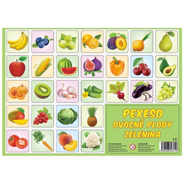 Spoločenská hra Pexeso Ovocie Zelenina, pri ktorej si deti hravou formou trénujú svoju pamäť. Hra sa po rozstrihaní skladá z 32 obrázkových dvojíc. Pexeso 32 dvojíc s obrázkami detských aktivít.