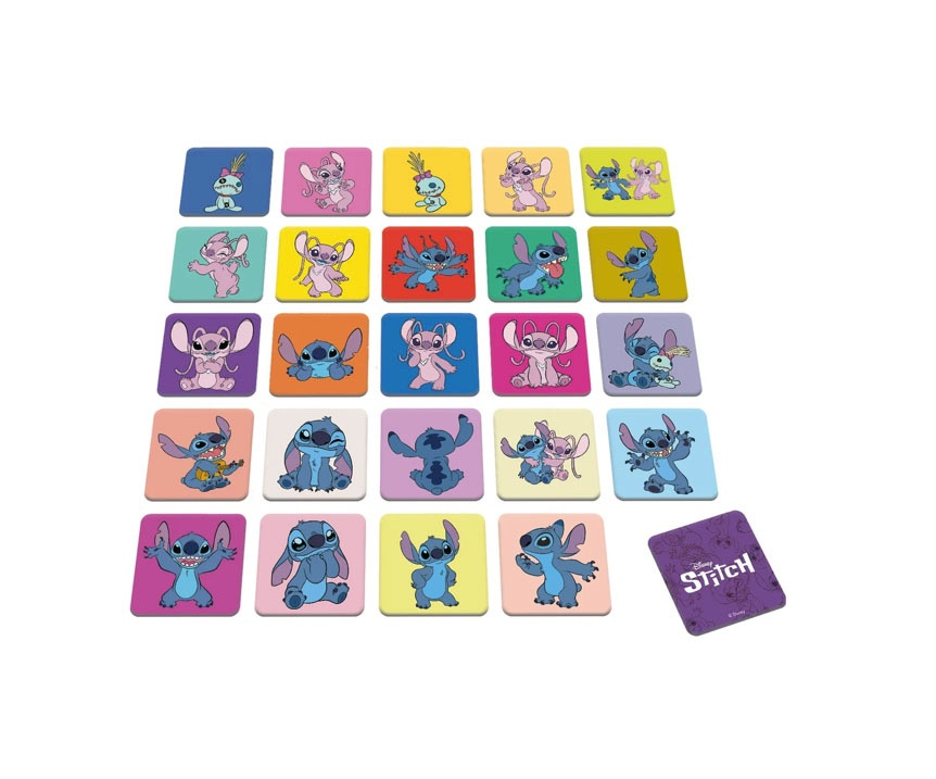 STITCH Pexeso. Stitch a Angel v rôznych podobách na 48 pevných kartičkách, s ktorými si zahráte obľúbené pexeso. Zábavná pamäťová hra, v ktorej hľadáte rovnaké dvojice obrázkov, za ktoré zbierate body. Vhodná pre všetky vekové kategórie. Rozvíja pamäť, priestorovú orientáciu a sústredenie. Pevné karty, certifikovaný materiál, dlhá životnosť. Vek 4+