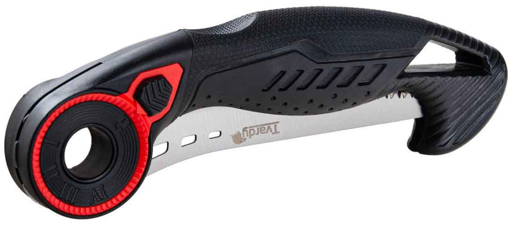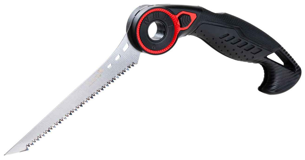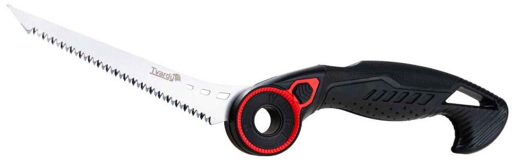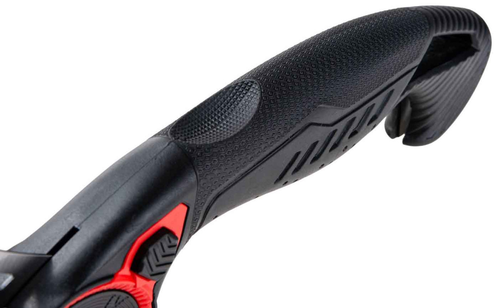 Rukoväť z TPR je ergonomická, ľahká a má čierno-červenú povrchovú úpravu. Vďaka tomu píla pohodlne padne do ruky a nešmýka sa ani pri dlhšom používaní.