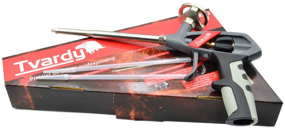 Profesionálna penová pištoľ TVARDY. Sada obsahuje dva nadstavce a hroty.