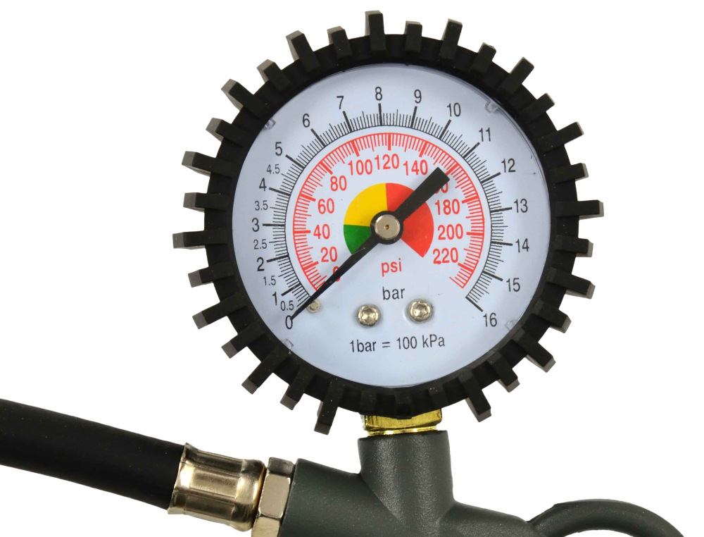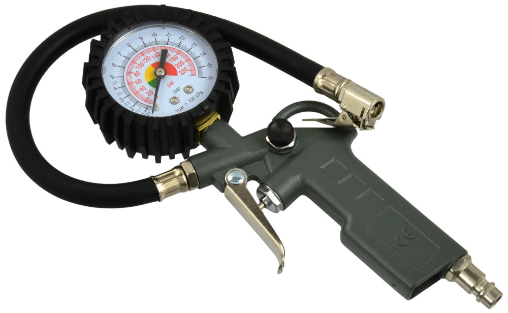 Pištoľ s tlakomerom určená na hustenie kolies.