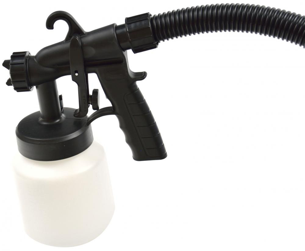 Striekacia pištoľ na striekanie povrchu jednou vrstvou farby, alebo laku. Umožňuje dosiahnuť na ťažko dostupné miesta, kde sa nedostane valčekom, alebo štetcom. Umožňuje rovnomerné pokrytie rôznych typov povrchov.