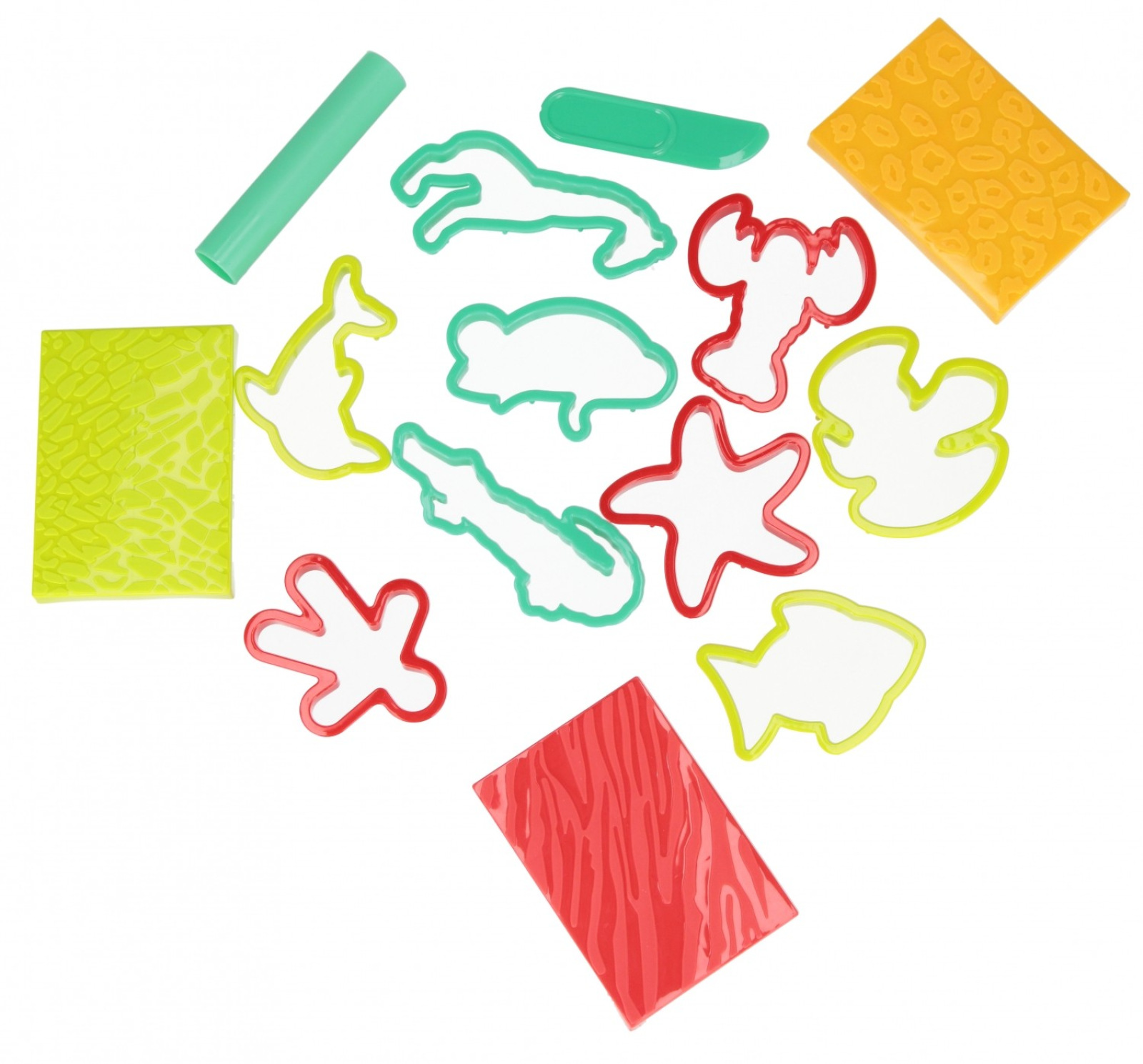 Plastelína s vykrajovačkami Safari je kreatívna sada pre malých umelcov. Obsahuje farebné plastelíny a rôzne doplnky na tvarovanie – nožík, valček, formičky a pečiatky. Podporuje tvorivosť, jemnú motoriku a predstavivosť. Vyrobené z plastelíny a plastu. Určené pre deti od 3 rokov. Cena za kus.