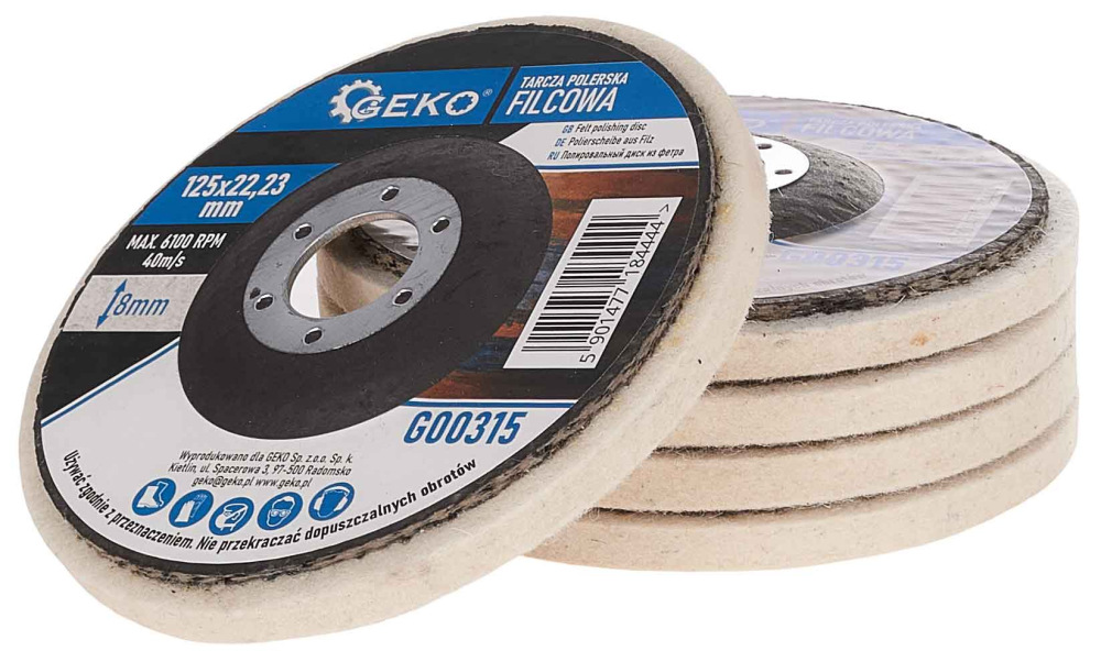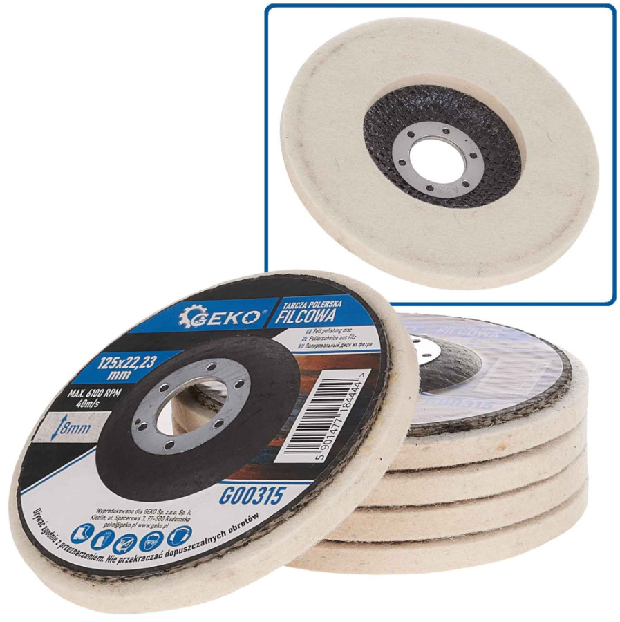Plstený leštiaci kotúč priemer 125 mm na uhlovú brúsku, hrúbka 8 mm, GEKO
