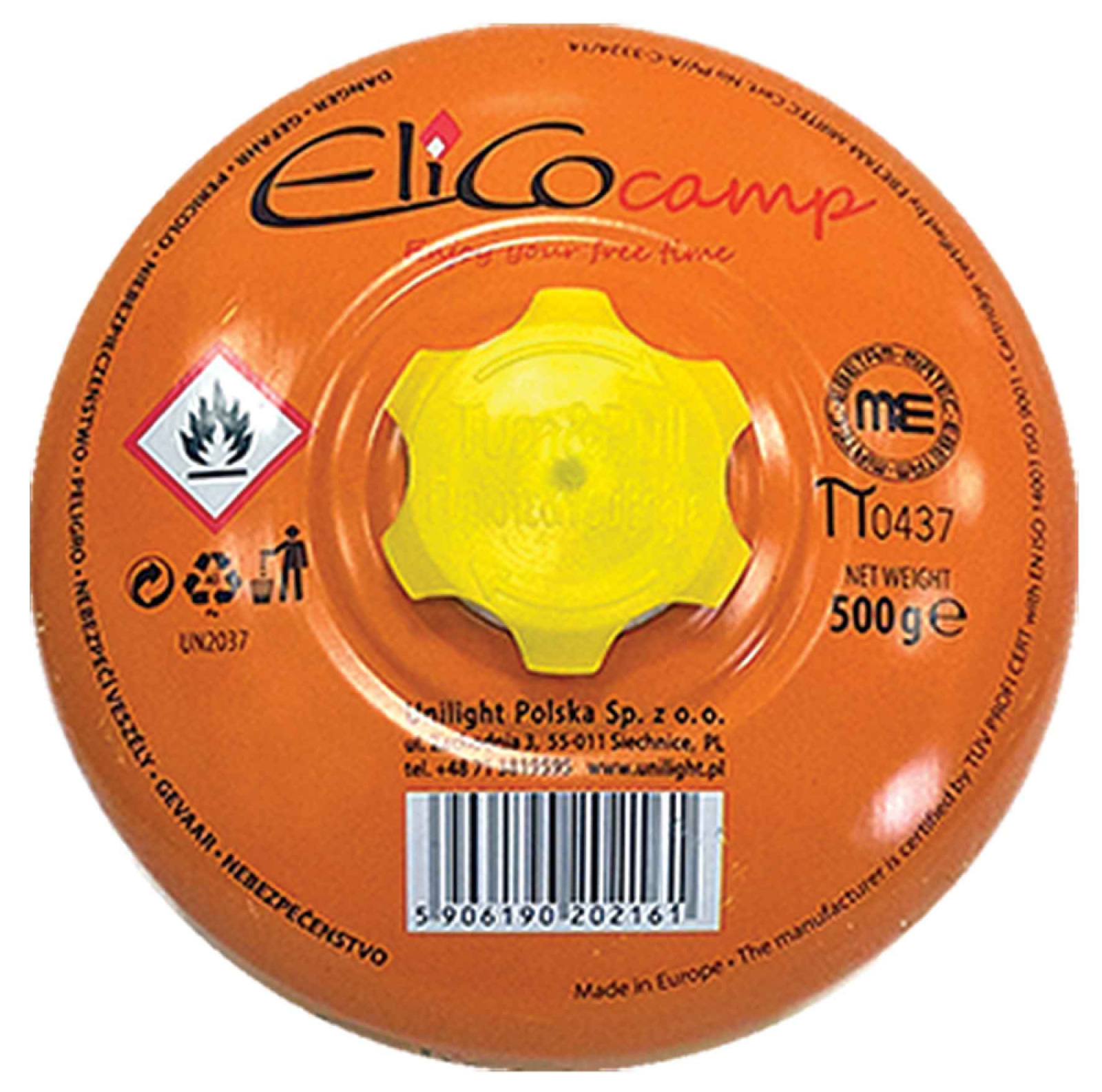 Plynová kartuša s propan-butanom 500 g, pripojenie na závit 7/16", ELICO