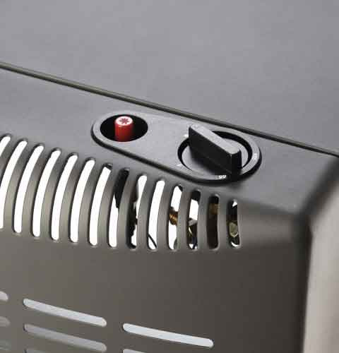 Výbava: kontrola spalín, termopoistka, tri polohy výkonu, kolieska, piezo zapaľovanie.