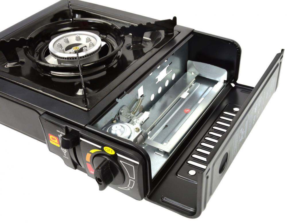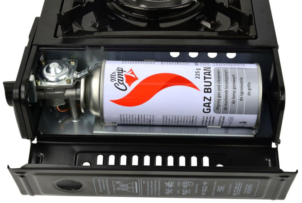 Sporák napájaný kartušami bežne používanými v tomto type zariadení. Je vybavený piezoelektrickým zapaľovačom, takže na spustenie nie sú potrebné žiadne zápalky ani zapaľovač. Horák má prídavné výstupky pre rovnomerné povrchové rozloženie tepla. Sporák má sito určené na grilovanie, čo z neho robí ideálne riešenie pri výletoch, táboroch atď.