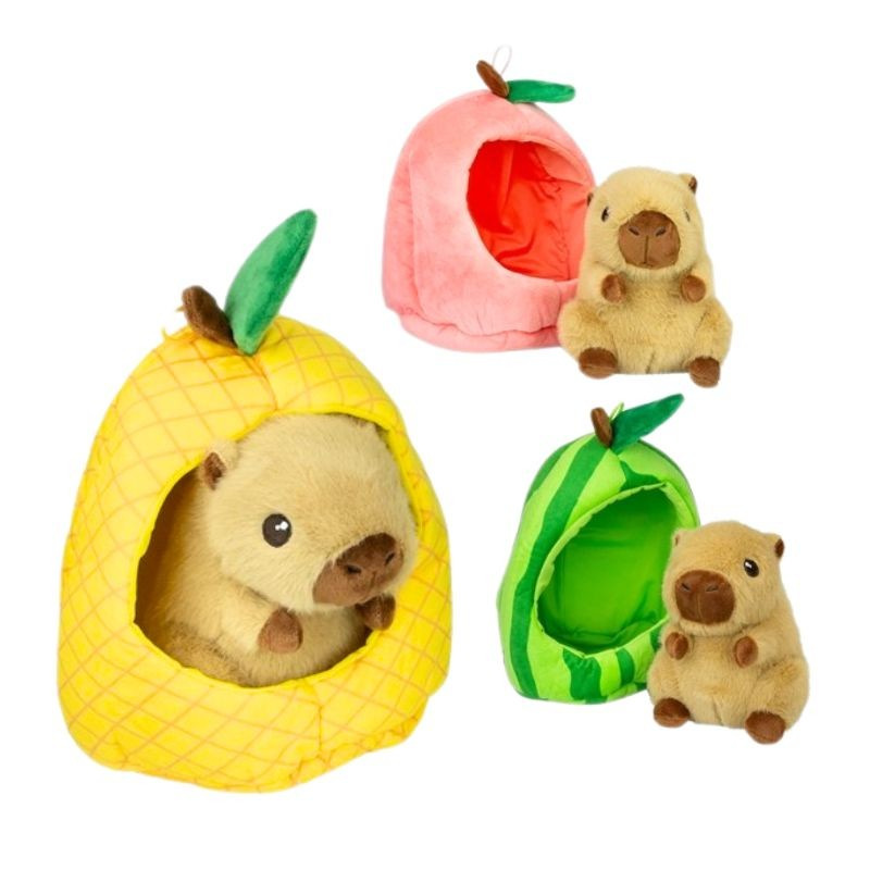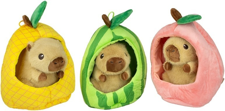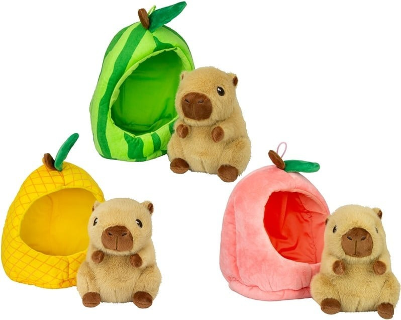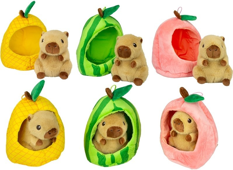 Roztomilá plyšová kapybara veľkosti 15cm ukrytá v ovocí je originálny a hravý plyšák, ktorý si deti okamžite zamilujú. Mäkký materiál je ideálny na maznanie a kompaktná veľkosť na hranie aj cestovanie. Dostupné v troch druhoch.