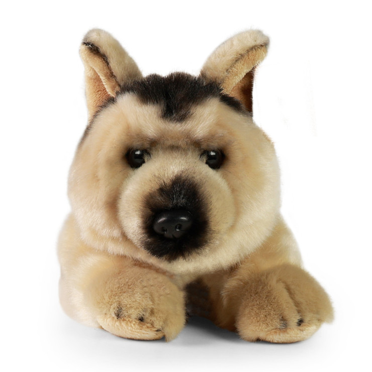 Plyšový ležiaci nemecký ovčiak, má rozmer 20 cm. Je vhodný pre deti 0+.