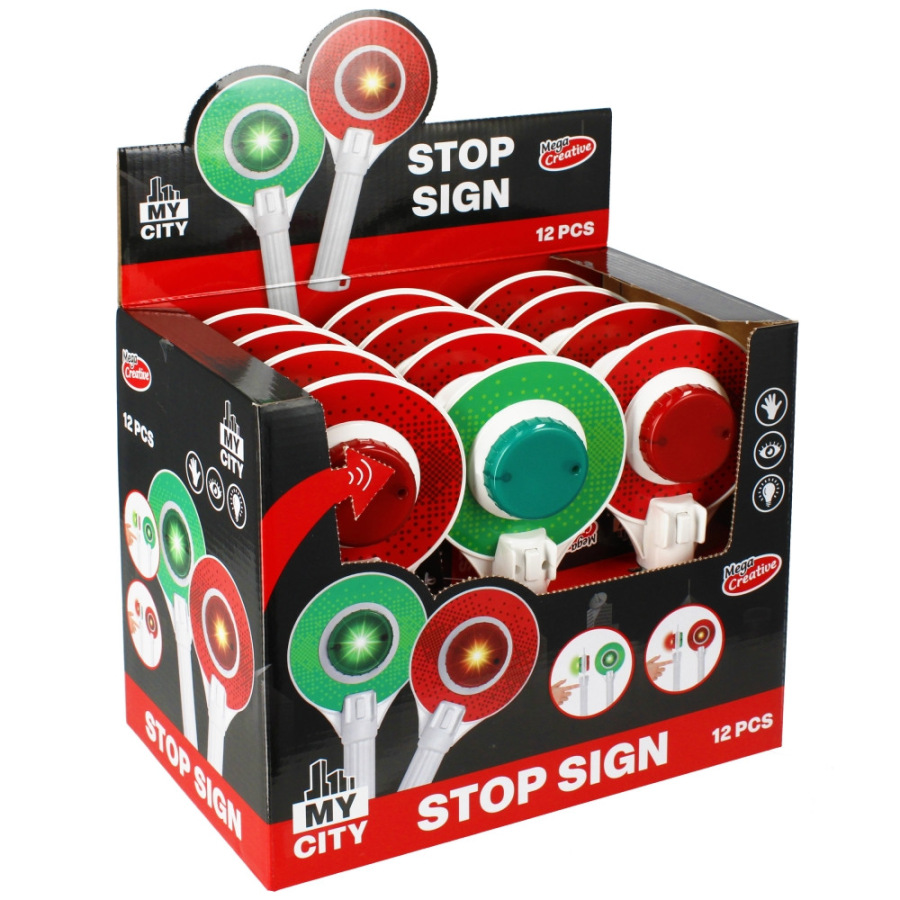 Policajná stopka, na jednej strane svieti na zeleno a na druhej na červeno. Rozmery produktu sú 11x24x4cm. Napájanie potrebné na 2 batérie AA 1,5V - súčasťou balenia. Balené po 12 kusoch. Cena je za 1 kus. Výrobok je určený pre deti vo veku: 3+.