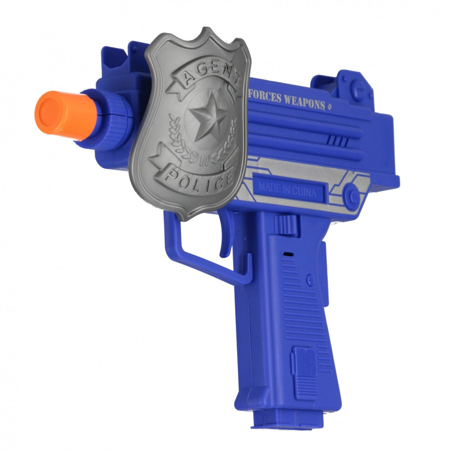 Policajný set so zbraňou, obsahuje zbraň a odznak. Potrebné sú 2 batérie AALR6 nie sú súčasťou balenia. Rozmery produktu sú 20x15x3cm. Vhodné pre deti 3+.