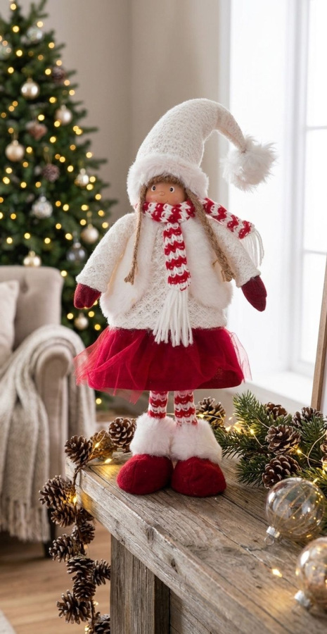 Krásna postavička MagicHome dievčatko skrášli váš domov počas vianočného obdobia. Farba je červeno-biela. Postavička je vyrobená z tkaniny a jej výška je 57 cm.