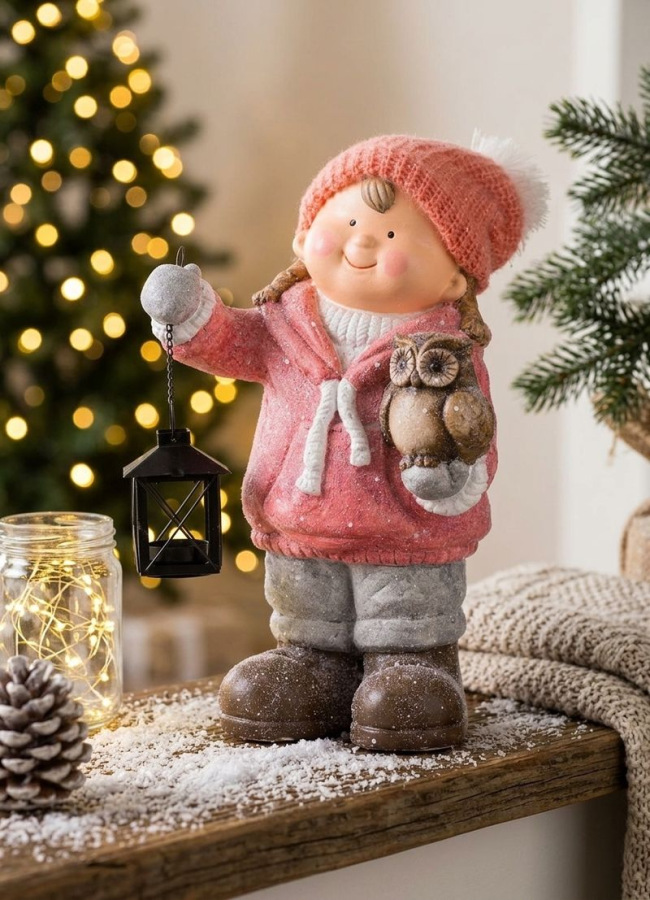 Krásna postavička MagicHome dievčatko s lampášom a sovičkou skrášli váš domov počas vianočného obdobia.