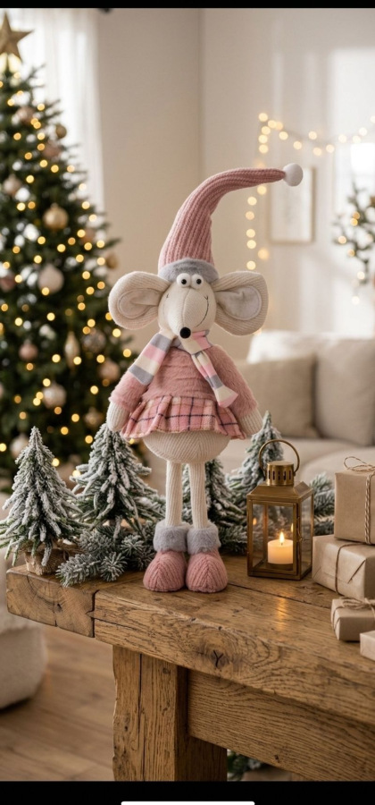 Krásna postavička MagicHome myš-dievčatko skrášli váš domov počas vianočného obdobia. Farba je ružová. Postavička je vyrobená z tkaniny a jej výška je 59 cm.