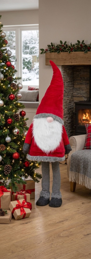 Krásna postavička MagicHome škriatok v šatách skrášli váš domov počas vianočného obdobia. Farba je červeno-sivá. Postavička je vyrobená z tkaniny a jej výška je 163 cm.